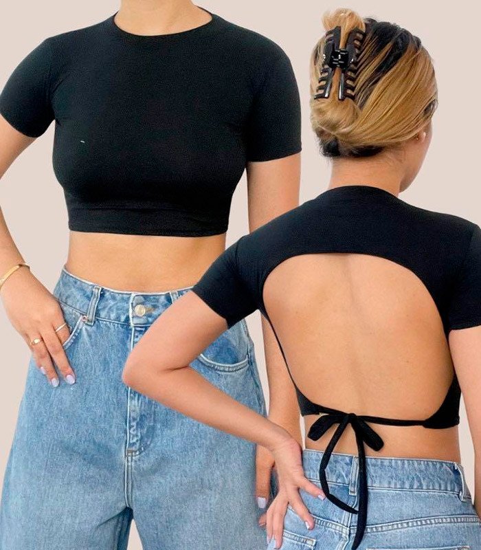 Crop cuello redondo con manga corta y espalda completamente descubierta