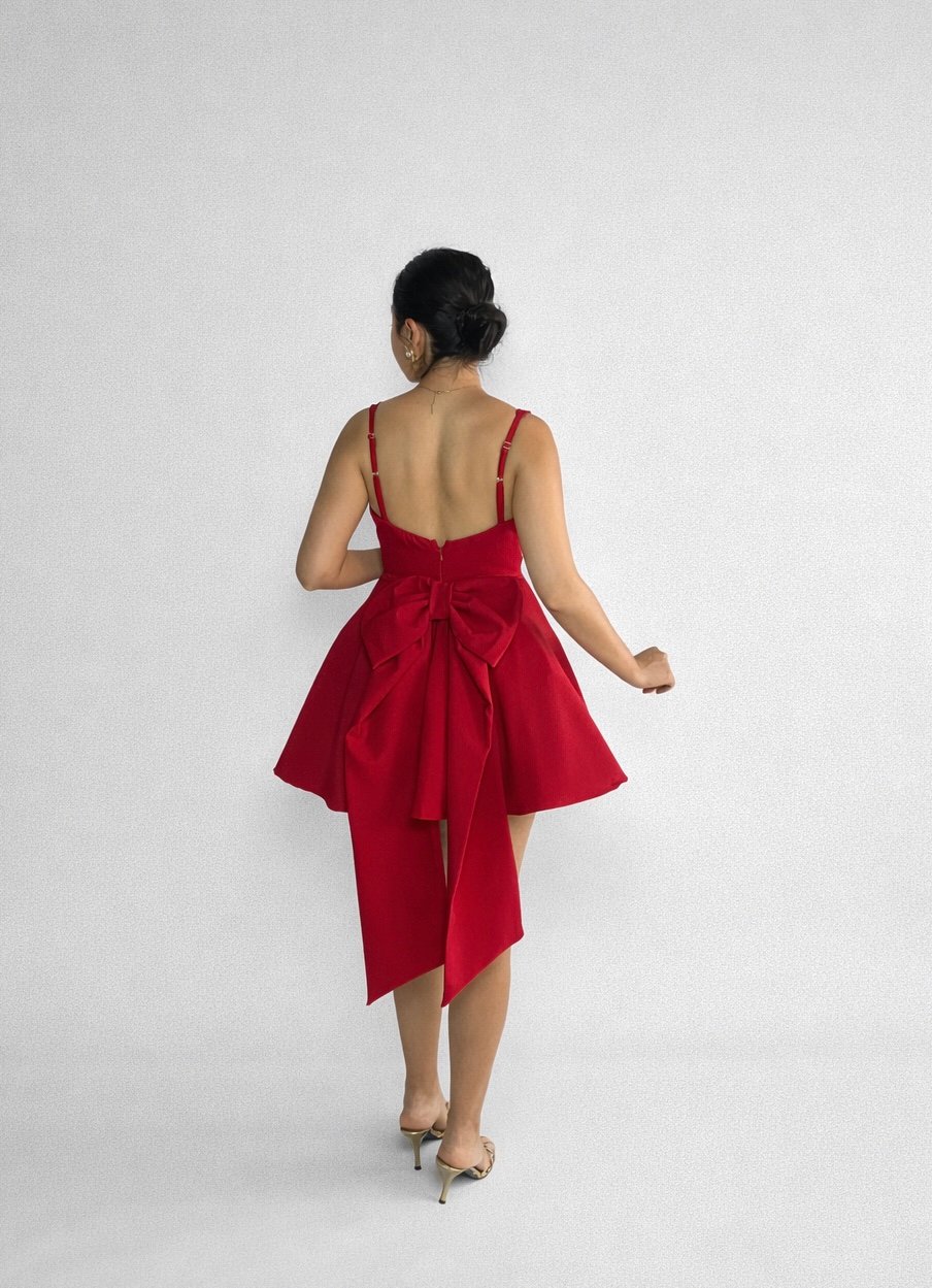 Vestido ideal si quieres sentirte como una princesa en un evento especial, con su silueta ajustada arriba y su falda con vuelo hará ver tu silueta con forma de reloj de arena y lleva la feminidad al siguiente nivel con su hermoso detalle de moño en la espalda, puedes usar tu vestido con o sin moño según quieras