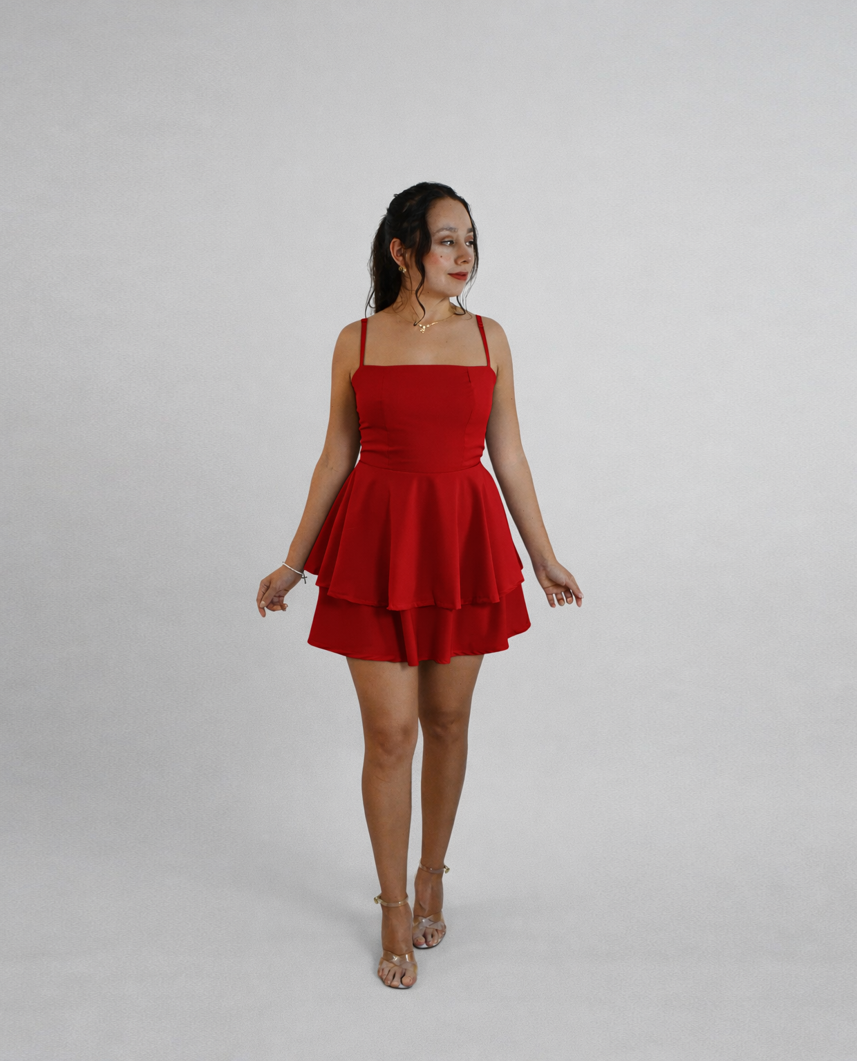 Vestido corto de tirantes con detalle de moño en la espalda, con resorte en la cintura en la parte posterior para mayor comodidad