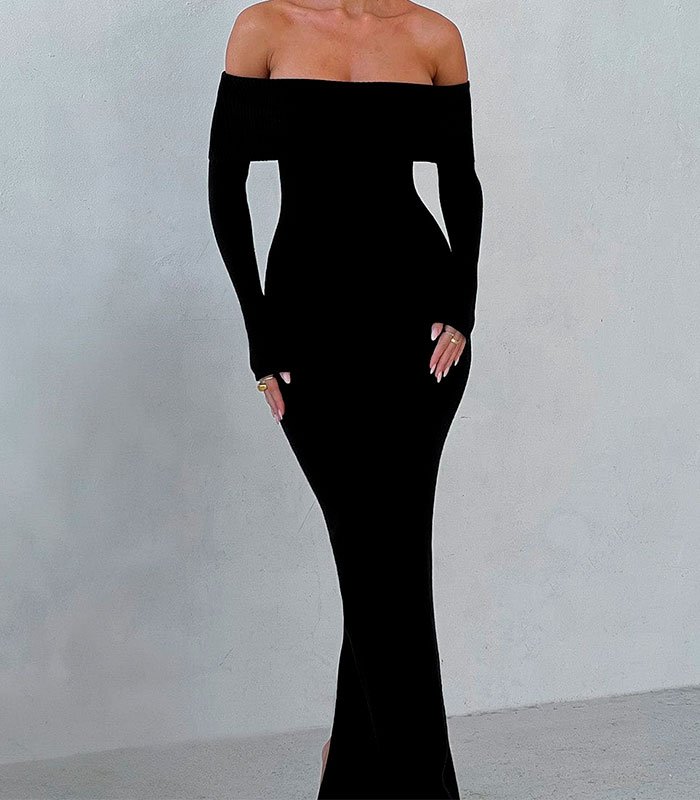 Vestido largo cuello bandeja que con su minimalismo hace que sea una pieza atemporal, podrá acompañarte mucho tiempo en tu armario ya que por su diseño es de esas prendas que nunca pasaran de moda